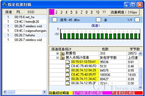 問題發(fā)現(xiàn):通過實(shí)時流量的統(tǒng)計分析,我們發(fā)現(xiàn)在信道6,AP數(shù)量10個,目前某AP接入終端數(shù)為16,對某些終端的服務(wù)質(zhì)量急劇降低,導(dǎo)致錯誤包過大。