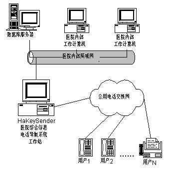 現(xiàn)有醫(yī)院的觸摸屏式導(dǎo)航系統(tǒng)只能局限到醫(yī)院內(nèi)部,如要內(nèi)外結(jié)合,不論是效益或影響力上,都將是很可觀的。HaKeySender醫(yī)院綜合信息電話導(dǎo)航系統(tǒng)正是基于這種考慮,利用現(xiàn)有比較發(fā)達的電話網(wǎng),跟蹤和吸收發(fā)達國家的先進技術(shù),采用了計算機網(wǎng)絡(luò)技術(shù),數(shù)字信號處理技術(shù)以及多媒體技術(shù),開發(fā)出的智能HaKeySender醫(yī)院綜合信息電話導(dǎo)航系統(tǒng),為各醫(yī)療服務(wù)機構(gòu)提供了全面有效的解決方案。