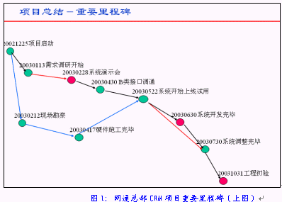 中國網通集團的"中國網通集團大客戶信息管理分析及一站服務系統(tǒng)"(以下簡稱網通總部CRM項目)的合同簽約儀式在這里舉行,合同總額約為人民幣3000萬元。而作為合同執(zhí)行方的是HOLLYCRM(合力金橋軟件)公司,在一個月前才從北京合力金橋系統(tǒng)集成公司拆分出來。HOLLYCRM的總裁曲道俊先生在拿到這份合同時輕輕松了一口氣,用艱苦卓絕、峰回路轉、跌宕起伏等等一系列字眼來形容這連續(xù)4個月的應標過程決不為過,畢竟所有的努力并沒有白費。但曲道俊先生并沒有完全沉浸在這種商場角逐取勝的快樂當中, 畢竟這么大的一個項目要由一個前身為事業(yè)部的公司來完全承擔實施畢竟不是一件容易的事, 他馬上整理了思路, 撥通了負責這個項目實施的項目經理盧毅的電話:半小時后我們辦公室見。