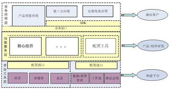 功能服務(wù)層是軟件研發(fā)的重點(diǎn),它在基礎(chǔ)技術(shù)平臺之上形成一個(gè)個(gè)核心組件,構(gòu)成應(yīng)用軟件產(chǎn)品的核心內(nèi)容,相對于直接面向客戶的應(yīng)用層來講,為二級層面,也可以理解為內(nèi)部組件,提供服務(wù)管理、配置管理,并提供全面的呼叫中心系統(tǒng)功能,完成“以客戶為中心”的服務(wù)請求->基本業(yè)務(wù)->客戶資料管理->主動(dòng)服務(wù)的閉環(huán)全過程,這個(gè)層面體現(xiàn)了軟件開發(fā)商的專業(yè)性。