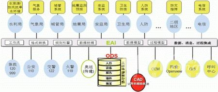 建立在ODS基礎(chǔ)上的ODS+EAI框架為整個公共安全應(yīng)急指揮系統(tǒng)提供基礎(chǔ)架構(gòu),通過該框架不僅可以交換并緩存數(shù)據(jù)信息,同時(shí)可以交換和記錄調(diào)度命令,通過數(shù)據(jù)采集構(gòu)建信息數(shù)據(jù)基礎(chǔ),記錄并歸檔事件處理過程,維護(hù)和利用預(yù)案處理過程。同時(shí)該框架也為我們建議的本地或遠(yuǎn)程OEM系統(tǒng)、甚至是移動的OEM系統(tǒng)提供有力的技術(shù)和數(shù)據(jù)支撐。