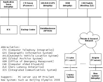 結(jié)合HP公司在全球范圍內(nèi)911應(yīng)急系統(tǒng)和安全領(lǐng)域的建設(shè)經(jīng)驗(yàn)和案例,HP公司針對國內(nèi)對公共安全建設(shè)的需求,提供了公共安全系統(tǒng)的建設(shè)架構(gòu)和解決方案