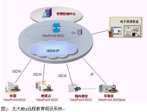 北京大學(xué)是我國首批被確定開展現(xiàn)代遠(yuǎn)程教育試點的院校之一,自1999年起至今,北京大學(xué)現(xiàn)代遠(yuǎn)程教育已經(jīng)遍布全國18個省市,2002年北大MBA作為國內(nèi)先進的遠(yuǎn)程教育項目作為一項重要的國際間的教育交流項目,欲通過建設(shè)視訊系統(tǒng)和美國互通,進行國際間的MBA遠(yuǎn)程教學(xué),同時可以進行幾個分點之間的交互式視頻會議,提高學(xué)習(xí)效率。