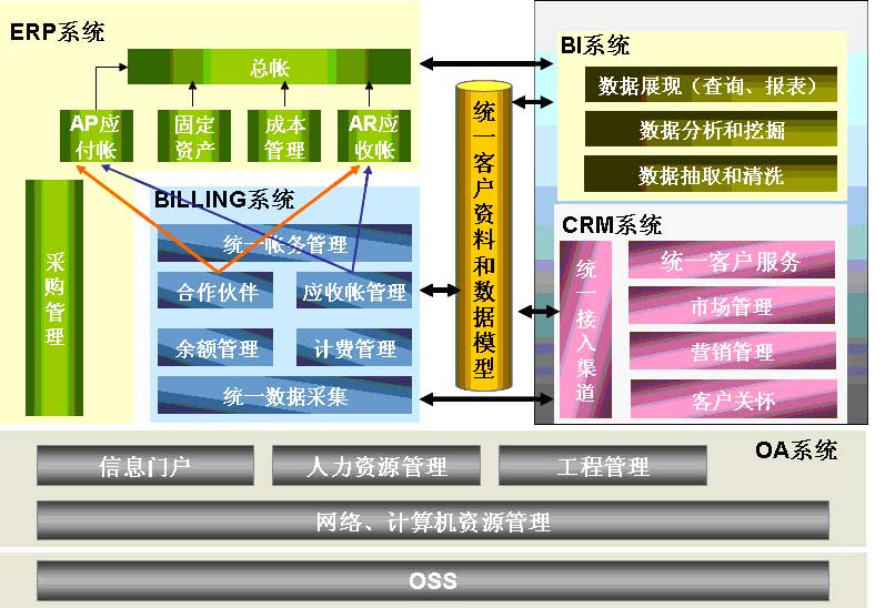 在IMS時代計費將向網(wǎng)絡(luò)側(cè)傾斜,傳統(tǒng)的BSS將向BOMS(BusinessOperationManagementSystem)演進(jìn),BSS的重心將向營銷、CRM和服務(wù)等業(yè)務(wù)管理及分析轉(zhuǎn)變。結(jié)合NGOSS的發(fā)展,運營支撐系統(tǒng)逐漸演變?yōu)镃RM+BILING的體系架構(gòu)。