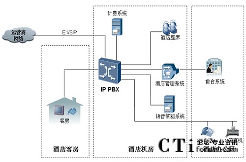 提供入住和退房服務(wù),提供PMSI接口,提供語(yǔ)音郵箱業(yè)務(wù)、呼叫權(quán)限等應(yīng)用。