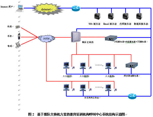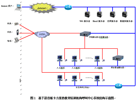 教育培訓(xùn)機(jī)構(gòu)呼叫中心系統(tǒng)是一個集合電話語音、計算機(jī)網(wǎng)絡(luò)、數(shù)據(jù)庫等技術(shù)的綜合信息服務(wù)平臺,主要由自動語音應(yīng)答系統(tǒng)、人工座席和數(shù)據(jù)庫系統(tǒng)三部分組成。