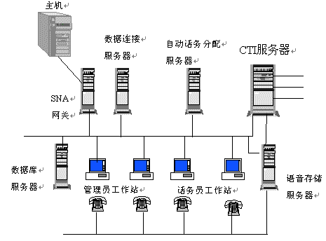 CTI服務(wù)器是電腦與電話(huà)信息集成的關(guān)鍵,所有經(jīng)由電話(huà)進(jìn)入的信息都會(huì)通過(guò)它傳到話(huà)務(wù)員電腦並自動(dòng)顯示,以提供進(jìn)一步服務(wù)。