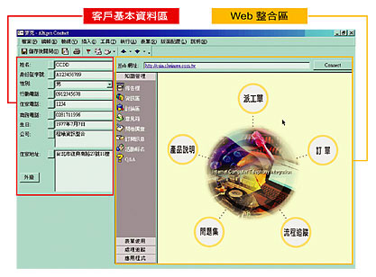 AltiGen可整合Web機(jī)制,Web為全世界Internet的標(biāo)準(zhǔn)介面,更是整合全球資源達(dá)無遠(yuǎn)弗屆境界的功臣,同時(shí)企業(yè)主可在其上輕易開發(fā)或整合其他程式,更可整合Web跑單 (Work Flow)、訂單等功能,使用者可一邊與客戶通話,一邊在電腦螢?zāi)簧舷掠唵位蚍峙晒ぷ,?jié)省人工跑單作業(yè)時(shí)間,提升作業(yè)效率,同時(shí)對(duì)于跑單狀況的追蹤管理皆可在統(tǒng)一介面獲得整合,任何更新的進(jìn)度都可第一時(shí)間掌握。