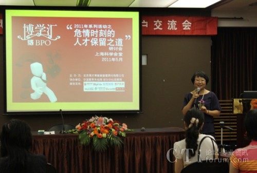 CTI論壇(ctiforum)6月3日消息(記者 張潔):2011年5月31日下午,上?茖W會堂思南樓九層賓客盈門,勝友如云。易才博普奧“博學匯”系列活動之四“危情時刻的人才保留之道”研討會在輕松愉悅的氛圍中拉開帷幕。本屆“博學匯”以“人才保留”為主題,邀請了業(yè)內(nèi)權(quán)威專家及其資深從業(yè)者就人才保留這一話題展開一系列探討。會上分別從學術(shù)觀點、呼叫中心、人力資源、服務外包等諸多領域來探討人才保留的種種新途徑、新方法。