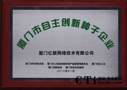 根據(jù)國家科技部、國務(wù)院國資委和全國總工會三部委制定的“創(chuàng)新型企業(yè)試點(diǎn)工作實(shí)施方案”和廈門市“技術(shù)創(chuàng)新引導(dǎo)工程實(shí)施方案”具體要求,市科技局、市國資委、市總工會、市財政局、市經(jīng)發(fā)局聯(lián)合開展了2010年廈門市自主創(chuàng)新示范、試點(diǎn)、種子企業(yè)評選工作。經(jīng)專家評審和市五部門聯(lián)合審核后,廈門億聯(lián)網(wǎng)絡(luò)技術(shù)有限公司(以下簡稱億聯(lián))憑借科技、環(huán)保的產(chǎn)品和強(qiáng)大的研發(fā)實(shí)力獲得了廈門市自主創(chuàng)新種子企業(yè)獎。