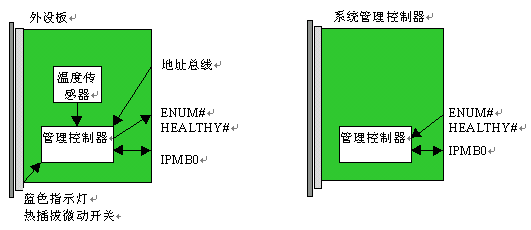 PICMG 2.9規(guī)范得到了進一步的改善,增補了一份變更通知,解決了最初2.9規(guī)范中的一些缺陷。ECR致力于定義一種就軟件來說與硬件無關(guān)的機制,這種機制能判別背板的容量以及哪個槽位已經(jīng)插入了CompactPCI單板。位于一個標準CompactPCI單板上的管理控制器可能會和地址總線、位于單板把手上熱插拔微動開關(guān)、藍色的熱插拔燈、甚至是HEALTHY和ENUM#信號聯(lián)通。典型的系統(tǒng)管理控制器板與位于外設板上的管理控制器的聯(lián)接如下圖3所示: