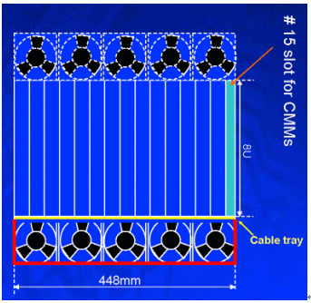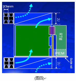 另外在機(jī)架內(nèi)的放置空間上,42U的標(biāo)準(zhǔn)機(jī)架里可以放3臺(tái)12~14U機(jī)箱,若將機(jī)箱降至10U則可以放置4臺(tái),這樣可以增加整體空間的利用率,所以有了10U機(jī)箱的設(shè)計(jì)需求。在各種不同高度的機(jī)箱設(shè)計(jì)中,風(fēng)扇散熱系統(tǒng)的放置位置、方式與總散熱效能能夠達(dá)到200*14=2800W,將會(huì)是ATCA機(jī)箱設(shè)計(jì)所要考慮的最重要因素之一,尤其是在10U的機(jī)箱設(shè)計(jì)上。