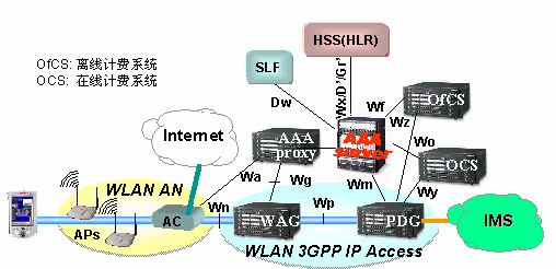WLAN接入網(wǎng)關(guān)(WAG)位于WLAN和3GPP網(wǎng)絡(luò)之間。在用戶(hù)漫游的情況下,它位于3GPP的拜訪網(wǎng)絡(luò)中。它為WLAN和3GPP網(wǎng)絡(luò)間的數(shù)據(jù)流提供過(guò)濾、管制和計(jì)費(fèi)功能。