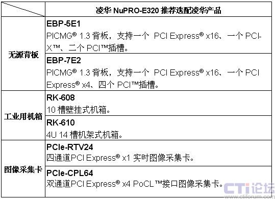表1 凌華科技NuPRO-E320推薦選配產(chǎn)品表