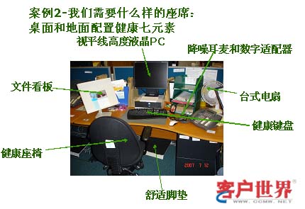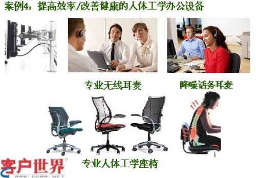 還有一個(gè)話(huà)題是健康座席怎么去配備,我主張七個(gè)元素,這個(gè)是在英國(guó)學(xué)到的,英國(guó)的話(huà)務(wù)員他們每個(gè)人都干到40歲,他們可以從20歲-40歲還沒(méi)有厭倦這個(gè)行業(yè)和崗位,他們認(rèn)為這個(gè)工作不是天天疲于應(yīng)付,或者說(shuō)強(qiáng)度非常高而產(chǎn)生很大壓力的工作,他們很熱愛(ài)自己的工作,你看他們有很舒服的座椅,還有腳墊,女孩子如果注意保養(yǎng)自己身材的話(huà),要經(jīng)常有機(jī)會(huì)站起來(lái),保持一種站立狀態(tài)去工作,包括有一些電扇、健康的鼠標(biāo)、鍵盤(pán)、降噪耳機(jī),等等,包括視頻顯示液晶屏都可以讓客服代表享受輕松的工作感受,不會(huì)因?yàn)槠诙a(chǎn)生厭倦,這種厭倦來(lái)的非常晚,當(dāng)一個(gè)員工在一個(gè)新的崗位工作超過(guò)一年以后,在他的厭倦感來(lái)臨之前我們已經(jīng)幫他調(diào)整好這種心態(tài)和適應(yīng)力,可能他的厭倦感會(huì)一直不來(lái),這樣的話(huà)我們就可以很長(zhǎng)時(shí)間保有一個(gè)有經(jīng)驗(yàn)的優(yōu)秀客服代表,為公司節(jié)省很多成本,這樣的工作是非常舒服的。