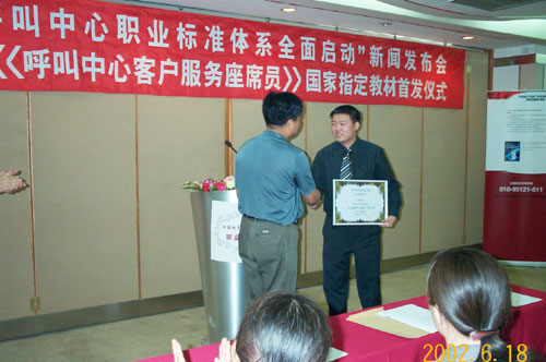 "呼叫中心職業(yè)標(biāo)準(zhǔn)體系全面啟動"新聞發(fā)布會,暨《呼叫中心客戶服務(wù)座席員》國家指定教材首發(fā)儀式于2002年6月18日在北京舉行。呼叫中心行業(yè)全面引入國家標(biāo)準(zhǔn)管理體系,全國范圍內(nèi)客戶服務(wù)代表將陸續(xù)持證上崗。
