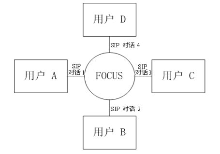 緊耦合會議的邏輯架構(gòu)圖如圖三所示。會議中的核心是"會議中心(conference focus)",每一個(gè)會議都有一個(gè)會議中心,由一個(gè)URI標(biāo)識,用戶通過聯(lián)系這個(gè)URI參加到一個(gè)會議中去。會議中心和用戶之間的拓?fù)浣Y(jié)構(gòu)為星性結(jié)構(gòu)。會議中心為用戶提供并維持一個(gè)信令連接,并且可以執(zhí)行會議策略,實(shí)現(xiàn)對會議的控制和管理。