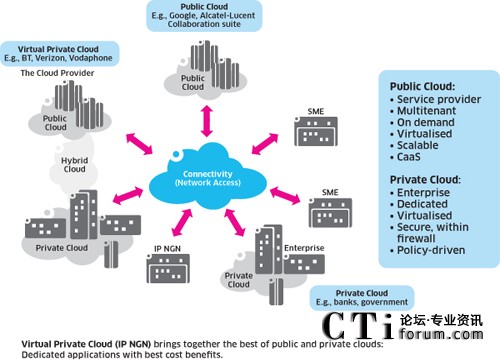 通信服務(wù)提供商非常適合定位于提供云服務(wù),阿爾卡特朗訊企業(yè)部,產(chǎn)品營(yíng)銷,通信解決方案副總裁(如優(yōu)先級(jí)和應(yīng)用程序的緩存)。對(duì)于企業(yè)客戶,他們可以建立虛擬私有云,或簡(jiǎn)單地成為純粹的云服務(wù)提供商,通過聚合資源,基于基礎(chǔ)設(shè)施為許多組織同時(shí)提供服務(wù)。