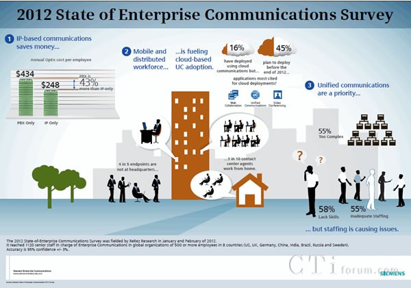 企業(yè)員工移動(dòng)性的增加推動(dòng)了向云方案的轉(zhuǎn)移,而IT人員有限的技能妨礙了統(tǒng)一通信的部署