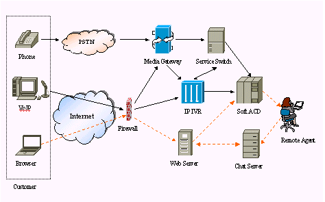 FineSupportIP Contact Center基于先進(jìn)的LodeSoft iAfx體系架構(gòu),完全統(tǒng)一來自電話和Internet的客戶服務(wù)請求。來自PSTN的電話語音首先經(jīng)由媒體網(wǎng)關(guān)轉(zhuǎn)換為IP電話數(shù)據(jù)流,具有完全分布式特性,能夠幫助江蘇網(wǎng)通實(shí)現(xiàn)多點(diǎn)的、虛擬統(tǒng)一的客戶服務(wù)中心的目標(biāo);其基于VoIP技術(shù)的軟件ACD(自動呼叫分配器)根據(jù)呼叫類型、服務(wù)人員忙閑狀態(tài)、可定制的分配策略進(jìn)行呼叫分配;基于Voice XML技術(shù)的IP-IVR單元,可以靈活地定義自動語音服務(wù);系統(tǒng)另一顯著特點(diǎn)是系統(tǒng)遵循開放性原則,可集成第三方硬件和第三方業(yè)務(wù)軟件,使網(wǎng)通逐步實(shí)現(xiàn)統(tǒng)一、全面的客戶服務(wù)體系。