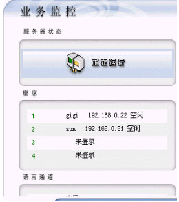 系統(tǒng)管理員能夠通過web監(jiān)控所有電話線、座席、系統(tǒng)資源的占用情況;能夠查看、統(tǒng)計(jì)呼叫次數(shù)、呼入接通率等參數(shù)指標(biāo)。