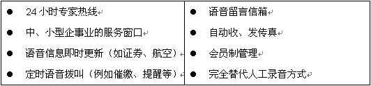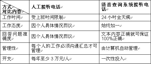 將以往的單位的人工熱線電話轉(zhuǎn)換為計(jì)算機(jī)24小時自動熱線。有效解決服務(wù)態(tài)度、服務(wù)質(zhì)量等敏感問題。咨詢來電只須象以往撥打熱線電話,計(jì)算機(jī)中的語音卡就會自動接通,完成95%以上的人工服務(wù)任務(wù),用戶就可以通過電話這種最簡單、最易用的方式快速獲取信息。