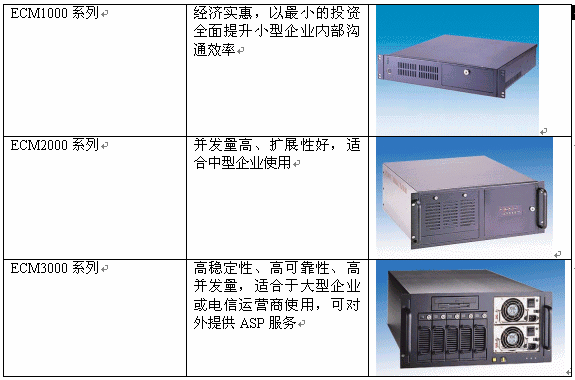 ECM產(chǎn)品分為1000、2000、3000系列,可分別適合于不同規(guī)模的企業(yè)使用。