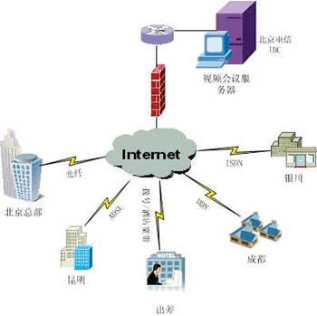 隨著業(yè)務(wù)和市場覆蓋的不斷提高,這些傳統(tǒng)企業(yè)的各種分支機構(gòu)也遍及從省、市一直到縣、鄉(xiāng)的各個區(qū)域,這種地理位置上的多樣性也造成了網(wǎng)絡(luò)環(huán)境的復(fù)雜,各種辦事處、分廠、子公司等分支機構(gòu)的接入方式往往會包括撥號、ISDN、ADSL、DDN等多種寬窄帶形式。此外,隨著企業(yè)信息化建設(shè)中對網(wǎng)絡(luò)安全問題的日益重視,視頻會議系統(tǒng)的建設(shè)不能對企業(yè)防火墻造成任何安全漏洞也成為企業(yè)信息化主管的一種普遍共識。