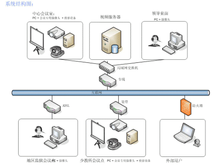 所以四川省勞動教育局希望能夠建立一個基于自身網(wǎng)絡(luò),高效率的溝通平臺,滿足日常工作和系統(tǒng)培訓(xùn)等對會議的需求,可以提高勞教系統(tǒng)的工作效率,及時傳達(dá)上級精神,并實(shí)現(xiàn)對下屬各級別單位的有效管理等。