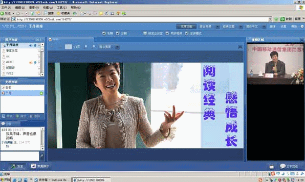 CTI論壇(ctiforum)1月21日消息(記者 張塵):2010年1月14日,江蘇省女性大講堂2010年第一集----于丹“閱讀經(jīng)典,感悟成長”專題講座在中國移動(dòng)江蘇綜合廳成功舉行。據(jù)悉,《閱讀經(jīng)典 感悟成長》是“全球通VIP名家講堂”聯(lián)手于丹推出的全國大型巡講式講堂,已先后在深圳、上海、蘭州、泉州、武漢、合肥等地進(jìn)行了講演。截止目前,全球通已成功舉辦“全球通VIP大講堂”25場,參與人數(shù)累計(jì)達(dá)上萬人次,先后邀請到了李肇星、張召忠、紀(jì)連海等專家學(xué)者擔(dān)任主講嘉賓。