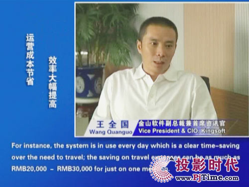 “以前從北京出發(fā)參加一次深圳的會(huì)議,往返至少要耗費(fèi)6小時(shí),而且往返機(jī)票也是一筆不小的開(kāi)支。采用新系統(tǒng)后,公司出差的機(jī)會(huì)明顯減少了,即使粗略統(tǒng)計(jì),節(jié)省的成本也是相當(dāng)可觀(guān)的。另外,倡導(dǎo)企業(yè)公民責(zé)任是全社會(huì)共同關(guān)注的話(huà)題,金山公司也在通過(guò)如采用視頻通信系統(tǒng)這樣的行動(dòng)積極響應(yīng)‘綠色企業(yè)’的號(hào)召!
