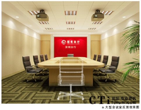 為了保證高清視頻會(huì)議的效果,招商銀行專門聘請(qǐng)專業(yè)設(shè)計(jì)公司對(duì)全行的會(huì)議室進(jìn)行專業(yè)顧問設(shè)計(jì),統(tǒng)一全行會(huì)議室的風(fēng)格,使到極致高清會(huì)議效果達(dá)到極限。