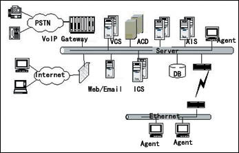 系統(tǒng)內(nèi)部所有媒體呼叫均采用IP數(shù)據(jù)包的格式由核心ACD Server統(tǒng)一處理,完成呼叫控制、路由處理、與呼叫同步的用戶數(shù)據(jù)管理及信息監(jiān)視。對(duì)于整個(gè)系統(tǒng)而言,雖然媒體接入方式各不相同,但路由策略卻可以完全一致。客戶可隨時(shí)隨地通過各種媒體與企業(yè)進(jìn)行緊密聯(lián)系。通過核心控制系統(tǒng),采用一致的路由方式,可以追蹤及管理所有媒體以及一切客服系統(tǒng)人力資源。