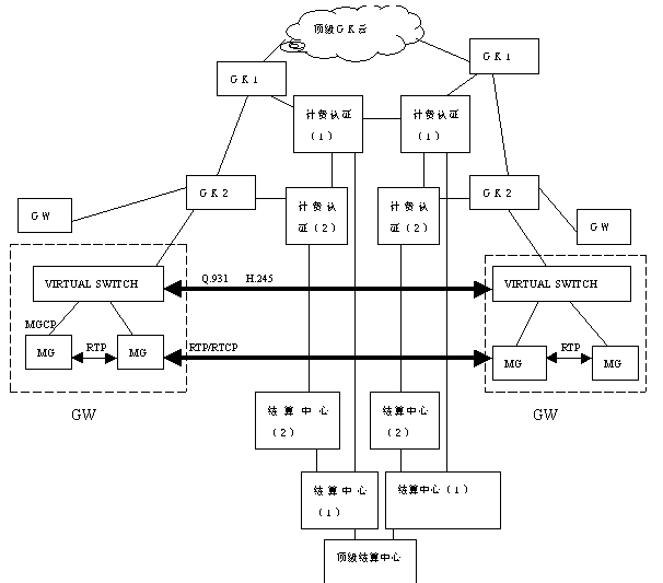其中頂級(jí)網(wǎng)守云可以包含多個(gè)頂級(jí)網(wǎng)守,頂級(jí)網(wǎng)守之間的連接、一級(jí)網(wǎng)守與頂級(jí)網(wǎng)守之間的連接以及不同運(yùn)營者之間的連接由各運(yùn)營者根據(jù)各自的情況自行確定其具體的連接方式。當(dāng)IP電話運(yùn)營者的網(wǎng)絡(luò)規(guī)模不是很大時(shí),頂級(jí)網(wǎng)守的功能可由其中一個(gè)一級(jí)網(wǎng)守完成。