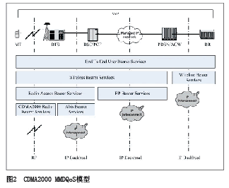 IMS是端到端的全I(xiàn)P架構(gòu),提供端到端的VoIP業(yè)務(wù)取代傳統(tǒng)的移動(dòng)電話業(yè)務(wù)。對于VoIP電話,影響其發(fā)展的首要因素是需要提供完善的QoS機(jī)制來保證其話音質(zhì)量不差于傳統(tǒng)移動(dòng)電話的話音質(zhì)量。圖2顯示了CDMA2000