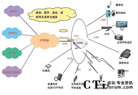 - 家庭網(wǎng)絡(luò)的外圍設(shè)備—STB、PC、可視電話、Bluetooth手機(jī)等;
