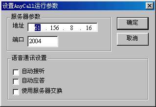AnyCall還為用戶提供了一些個(gè)性化的設(shè)置,點(diǎn)擊AnyCall的設(shè)置按鈕。就會(huì)彈出一個(gè)對(duì)話框在里面有服務(wù)器參數(shù)和語音通訊設(shè)置兩個(gè)設(shè)置項(xiàng),如圖4所示。服務(wù)器參數(shù)主要是設(shè)置AnyCall的語音交換服務(wù)器的IP地址和端口,以便進(jìn)行更好的語音傳輸。在語音通訊里面可以設(shè)置自動(dòng)應(yīng)答,自動(dòng)接聽。這樣免去了每次來電都要去點(diǎn)接聽按鈕的麻煩。