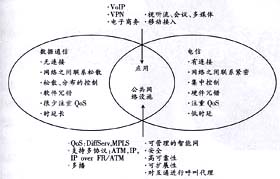 NGN是融合網(wǎng)絡。數(shù)據(jù)網(wǎng)與電信網(wǎng)曾是兩個有著不同特性的網(wǎng)絡,它們的融合將帶來一系列新的業(yè)務,并對網(wǎng)絡平臺提出新的要求(見圖1)。因此,NGN的網(wǎng)絡功能結構如何設定是我們要關注的重點。