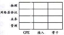 歐盟在NGN的劃分上,采取了比圖2更細化的方法,把網(wǎng)絡分為3個區(qū)域(用戶駐地設備(CPE)、接入、核心)和4個層面(物理、網(wǎng)絡層協(xié)議、服務、管理),見圖3。