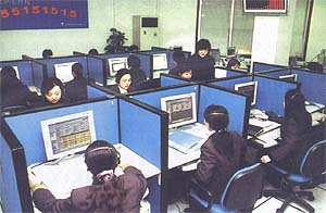 圖為經(jīng)過專業(yè)培訓的客戶服務(wù)代表正在親切客戶來電