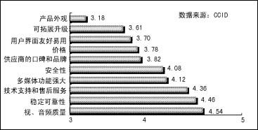CCID對視頻會議現(xiàn)狀調(diào)查結果顯示,與以往相比,用戶對視頻會議終端系統(tǒng)的選擇標準已經(jīng)發(fā)生了變化。用戶除了一如既往地要求很好的音視頻質(zhì)量外,對產(chǎn)品的穩(wěn)定可靠性、技術支持和售后服務、多媒體功能、安全性四項也有要求。其中,用戶對視頻會議終端系統(tǒng)的多媒體功能和設備的可拓展升級提出了更高的要求,而不再局限于視音頻質(zhì)量和穩(wěn)定、可靠性上,對多媒體功能的需求在不斷地增長。更多的用戶不僅把會議系統(tǒng)用于視音頻開會,更將視頻會議的多媒體功能作為采購的重要指標之一。