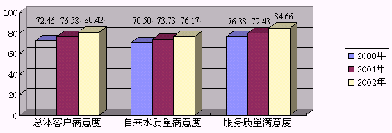 (2)率先建立以公布水質(zhì)信息為特點的客戶宣傳系列。過去水質(zhì)具有保密性,不能向外公開。近年來,市政府為改善水質(zhì)投入了大量的資金,使自來水質(zhì)量達到或超過了國家飲用水標準,但受各種飲用水產(chǎn)品的宣傳影響,人們對自來水疑慮重重。據(jù)客戶滿意度調(diào)查,客戶對水質(zhì)的重視程度為0.63,遠遠高于對水量0.37的重視程度,說明客戶對水質(zhì)的期望值較高。為正確引導客戶的期望,市北公司參照國外先進國家的慣例,爭取政府部門的支持,于2000年率先向社會公布了年度水質(zhì)報告,全面地介紹自來水水質(zhì)指標完成情況,并系統(tǒng)的建立了水質(zhì)信息公布制度,包括公布年度水質(zhì)報告,每天在公司網(wǎng)站上發(fā)布主要水質(zhì)指標及水壓、水量信息。在此基礎上,公司又編印"市北供水服務"小報,定期發(fā)放至市北供水區(qū)域的數(shù)千家居委會和物業(yè)公司及相關部門。特別從今年開始,公司通過改版后新水費帳單上的"市北供水服務"宣傳欄,又與廣大客戶建立了新的信息溝通渠道,初步形成了市北公司的客戶宣傳構(gòu)架,用較低的宣傳成本提高了客戶滿意度。