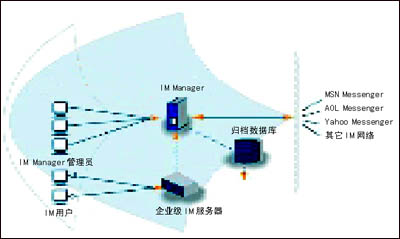 除了這些產(chǎn)業(yè)巨頭以外,巨大的IM管理市場也培育了許多專業(yè)的IM管理廠商。這些廠商的產(chǎn)品可以外掛至大公司的IM服務平臺,從而為企業(yè)用戶提供IM管理解決方案。IMlogic就是這樣一家公司,它的IM Manager產(chǎn)品可以管理來自微軟、雅虎、IBM、AOL以及Jabber等等公司的IM平臺。