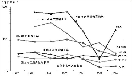 中國電信集團(tuán)總工程師韋樂平認(rèn)為,在世界范圍內(nèi)移動對固網(wǎng)的替代趨勢正在日益加速,這使得固網(wǎng)話務(wù)量、收入和主線等三個(gè)方面全面進(jìn)入衰退時(shí)期。根據(jù)IGO的統(tǒng)計(jì),全球有28個(gè)國家固網(wǎng)的復(fù)合增長率呈現(xiàn)下降趨勢,如美國、日本、北歐等。美國從2000年以后,電話的主線一直呈現(xiàn)持續(xù)下降的趨勢,每年減少250萬線,南方貝爾2003年第四季度一個(gè)季度就下降了40萬,形勢非常嚴(yán)峻。2003年歐洲前十位固網(wǎng)運(yùn)營商的收入增長,除了BT有百分之一的增長之外,全部都是負(fù)增長。而按照中國電信的統(tǒng)計(jì),2004年第一季度中國電信的增長率也是負(fù)的,這在歷史上是第一次出現(xiàn)。