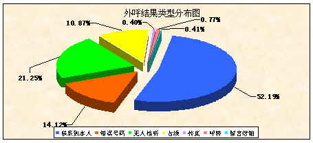 看到這一數據,精明的管理者可能要坐不住了。如何把這部分耗費的時間能有效的利用起來呢?而預測式的外呼系統(tǒng)正是用來解決這個問題的,其工作原理是系統(tǒng)在后臺根據某些設置條件成批的撥出電話,如果這個電話有人應答系統(tǒng)將立即將這條線派給空閑的坐席代表,如果是占線或者無人接聽等情況,系統(tǒng)則自動記錄下這次的聯(lián)系結果然后再撥打另一個電話。其結果是系統(tǒng)通過后臺的預撥和篩選不斷的將有效電話派給坐席,外呼坐席實際上就像一個呼入坐席,在不斷的處理著系統(tǒng)自動接入的電話,整體的工作效率將大為改善!