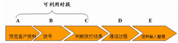 在以上的一個外呼過程中我們把它劃分成五個不同的階段,如果這個客戶未能聯(lián)系到,實際上我們在A、B、C這三個階段的時間就處于無用勞動的狀態(tài),白白耗費了人力資源。而這三階段的時間大約需要花費20-25秒/CALL,以一個月處理能力在30萬的呼叫中心來計算,我們耗費的時間為: