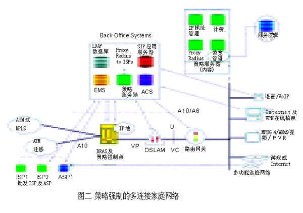 運營商基礎網(wǎng)絡形形色色的演化,歸根結底都圍繞著運營商最關心的利潤增長問題。隨著全球投入使用的DSL線路數(shù)目迅速接近1億,利用現(xiàn)有的DSL網(wǎng)絡提供更加豐富的高端服務,成為業(yè)界共同矚目的焦點。采用QoS和可靠的端對端策略強制 (policy enforcement) 技術是目前許多應用軟件的主要特征。如何把這些特性應用到DSL網(wǎng)絡上呢?