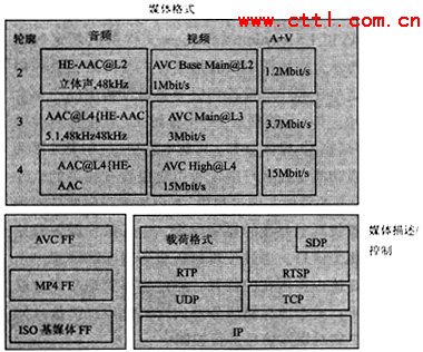 如第二部分所介紹那樣,ISMA致力于多種開放標準的集成,在2004年發(fā)布的ISMA2.0中給出了ISMA對流媒體業(yè)務的框架結構圖(見圖3)。從圖中可以看出、,ISMA最先希望解決的是與媒體編碼格式、媒體存儲、媒體傳輸(包括載荷輪廓)相關內容。在ISMA目前的體系架構中主要希望支持采用MPEG4標準進行編碼的媒體以及相應的標準存儲格式以及IETF所規(guī)定的標準傳輸協議,這與ISMA制定標準的準則相一致。