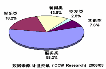 2006年,IVR業(yè)務(wù)的發(fā)展已經(jīng)具備了良好的外部條件。首先,具有龐大的潛在用戶群。有關(guān)統(tǒng)計(jì)顯示,截至2005年11月,中國(guó)移動(dòng)用戶數(shù)量達(dá)到3.88億,固定電話用戶數(shù)量達(dá)到3.51億,其中無(wú)線市話用戶數(shù)量達(dá)到8622萬(wàn)。其次,市場(chǎng)容量急劇膨脹;再次,業(yè)務(wù)收入快速增長(zhǎng);最后,IVR不受手機(jī)型號(hào)的限制,潛在用戶的普及率極高。這些使得IVR具有良好的發(fā)展?jié)摿Γ?jì)世資訊(CCW Research)認(rèn)為,IVR是繼短信(SMS)之后的又一座大型金礦。