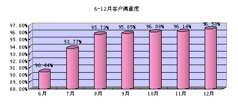 根據(jù)我們的客戶調(diào)查(每月一次),客戶對服務(wù)人員的業(yè)務(wù)能力的滿意度得到持續(xù)改進(jìn)。具體數(shù)據(jù)如下圖: